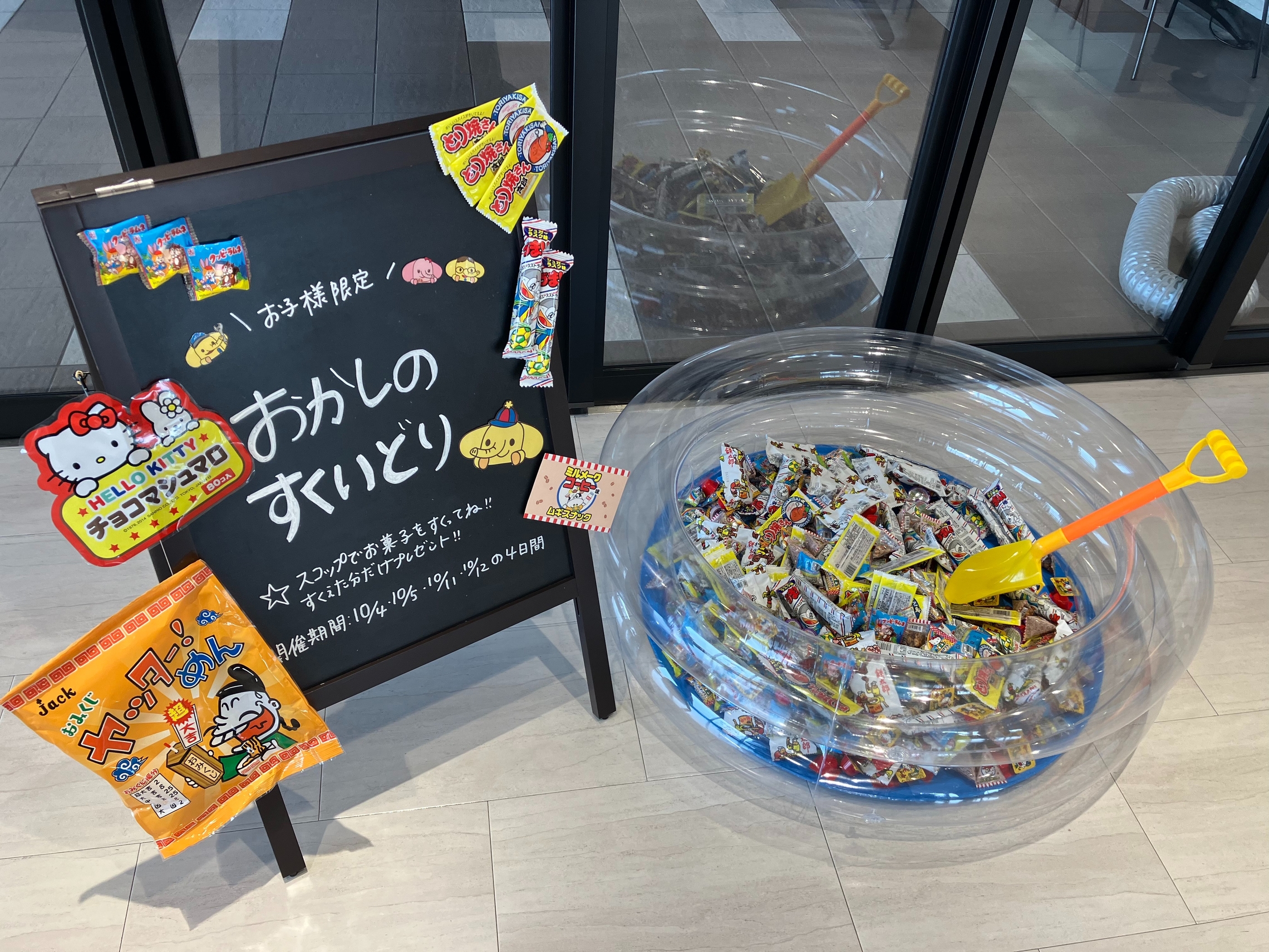スコップですくえた分のお菓子をプレゼントしています!