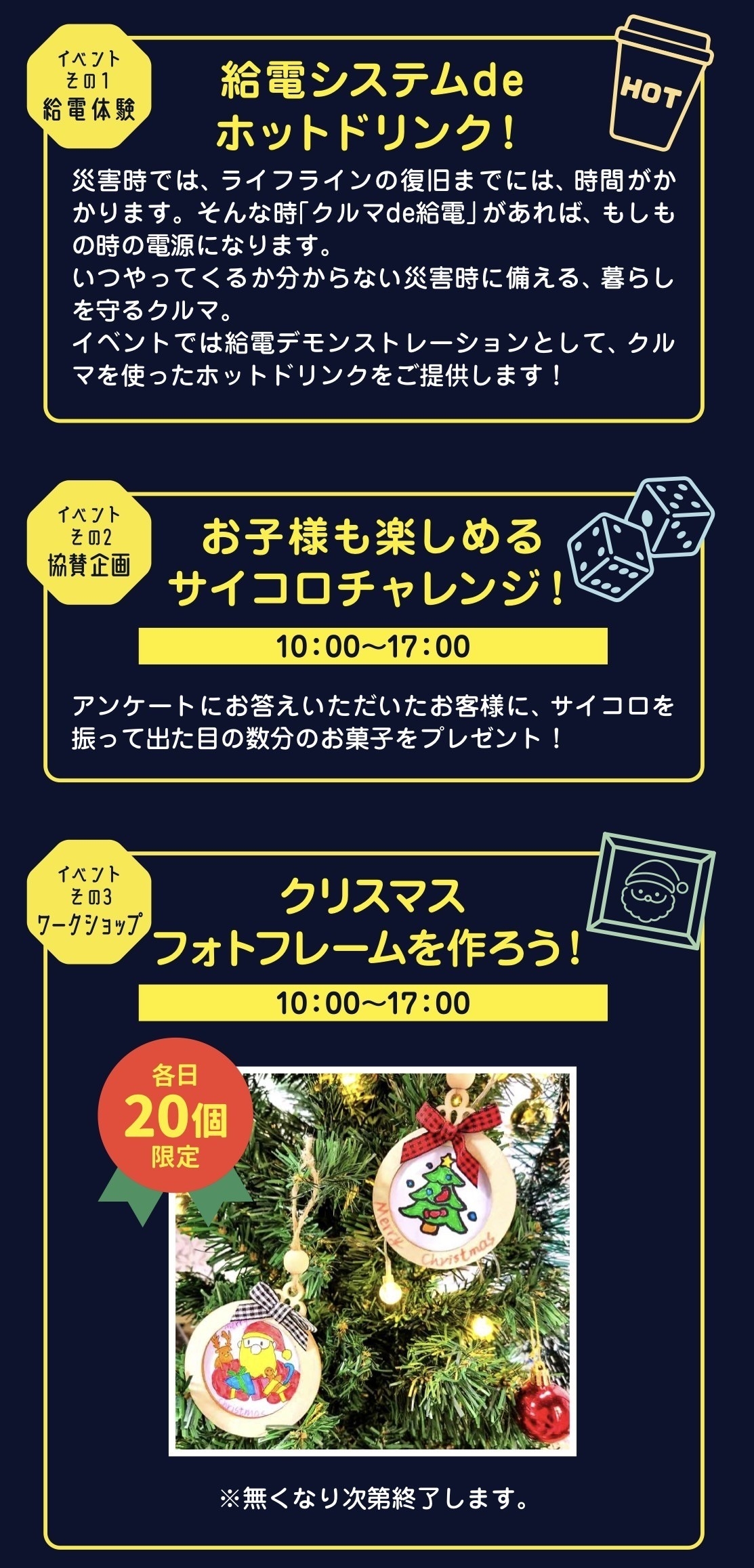 給電イベント&クリスマスワークショップイベントのお知らせです📝